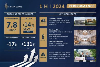 "สิงห์ เอสเตท" รายได้ครึ่งปี 67 แตะ 7,798 ล้านบาท เพิ่มขึ้น 14% รุกเดินหน้าทั้งตลาดบ้านและโรงแรม