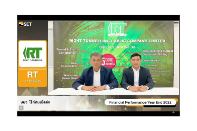 RT เผยแนวโน้มธุรกิจ Q1/66 ขยายศักยภาพงานอุโมงค์ดินอ่อน เร่งส่งมอบงาน 5 โครงการ มูลค่ารวม 508 ล้านบาท