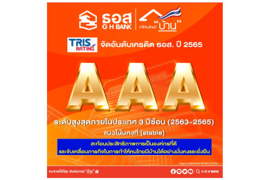 ธอส.เผย ทริสเรทติ้งคงอันดับเครดิตองค์กร-พันธบัตรไม่ด้อยสิทธิ ไม่มีหลักประกันที่ AAA แนวโน้มอันดับเครดิต “Stable” ปีที่ 3 ติดต่อกัน