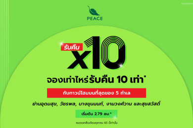 “พีซแอนด์ลีฟวิ่ง” จัดโปรโมชั่นเด็ด จองเท่าไหร่ รับคืนไปเลย 10 เท่ากับทาวน์โฮมคุณภาพ 5 ทำเลทอง วันนี้-31 ต.ค.นี้