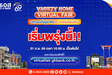 Variety Home Virtual Fair มหกรรมที่อยู่-การเงินออนไลน์ ธอส. โปรฯพิเศษฉลอง 69 ปี สินเชื่อบ้านดบ.ปีแรก1.69%
