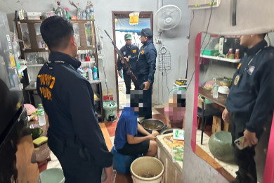 อำเภอกระทุ่มแบนเปิดปฏิบัติการ “ศรทองดับซุ้มพญาลอ” ทลายบ่อนไก่-ยึดยาบ้า 8,202 เม็ด