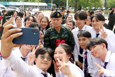 นศ.มทร.อีสาน กรี๊ด!! แห่เซลฟี่ "มทภ.2" บรรยายเรื่องการรักษาอธิปไตยชาติ ย้ำชายแดนมั่นคง