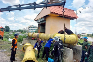 ชลประทานเร่งติดตั้งเครื่องสูบน้ำในเขตเมืองอ่างทอง เพิ่มการระบายน้ำพร้อมรับมือน้ำท่วม