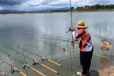 อ่างเก็บน้ำทับเสลา อุทัยฯแห้งเห็นสันดิน นักตกปลาแห่จับจองพื้นที่ใช้โอกาสสร้างรายได้