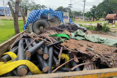 บุกจับแก๊งลักลอบเผาสายไฟกลางบ่อดินย่านโคกปีบ ยึดของกลางสายเคเบิ้ล-อุปกรณ์ตัดเหล็ก