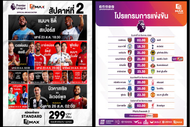 เปิดโปรแกรม "พรีเมียร์ลีก" สุดเดือด! "เรือใบ" ฟัด "ไก่" ขณะที่ "สาลิกาดง" เปิดศึก "หงส์แดง" 23-26 ส.ค.นี้ "Monomax" ถ่ายทอดสด