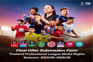 ส.กีฬาฟุตบอลฯ แจ้งเปิดรับราคาประมูลลิขสิทธิ์ถ่ายทอดสด ฟุตบอลลีกอาชีพ ฤดูกาล 2025/26-2028/29 รอบสุดท้าย
