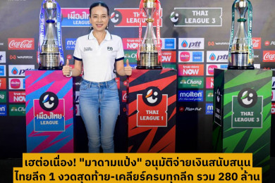 สโมสรเฮต่อเนื่อง! "มาดามแป้ง" อนุมัติจ่ายเงินสนับสนุนไทยลีก 1 งวดสุดท้าย เคลียร์ครบทุกลีก รวม 280 ล้าน