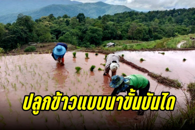 กรมข้าวใช้พันธุ์ "น้ำรู" ทำนาแบบขั้นบันได สอนวิธีปลูกข้าวชาวบ้านในโครงการบ้านเล็กในป่าใหญ่ฯบ้านหนองห้า