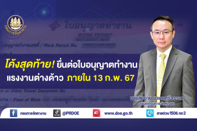 โค้งสุดท้ายไม่ขยายเวลา! กรมการจัดหางานเตือนแรงงาน 4 สัญชาติเร่งต่ออายุใบอนุญาตทำงานภายใน 13 ก.พ.67