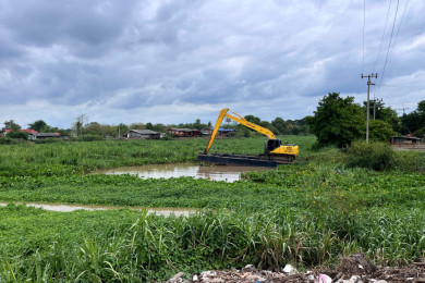 คลายทุกข์ชาวสุพรรณฯ!! ลุยกำจัดวัชพืชสิ่งกีดขวางทางน้ำคลองสองพี่น้อง