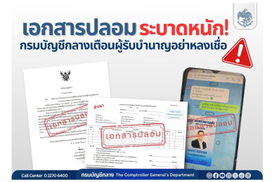 กรมบัญชีกลางเตือน! อย่าหลงเชื่อเอกสารปลอมคุ้มครองบัญชีเงินฝาก มิจฉาชีพแอบอ้างหลอกขอข้อมูล