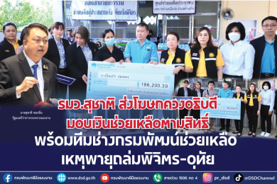 "รมว.สุชาติ" ส่งโฆษกควงอธิบดี มอบเงินช่วยเหลือตามสิทธิ์ พร้อมทีมช่างกรมพัฒน์ช่วยเหลือพายุถล่มพิจิตร-อุทัย