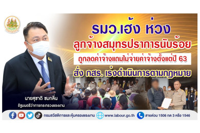 "รมว.สุชาติ" สั่ง กสร.เร่งช่วยเหลือสิทธิตามกฎหมาย ลูกจ้างนิติบุคคลอาคารชุดถูกค้างจ่ายค่าจ้างกว่า 500 คน