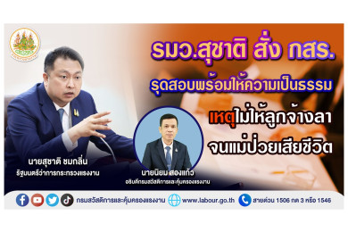 "รมว.สุชาติ" สั่ง กสร.เร่งตรวจสอบพร้อมให้ความเป็นธรรม นายจ้างไม่ให้ลูกจ้างลาจนแม่ป่วยเสียชีวิต