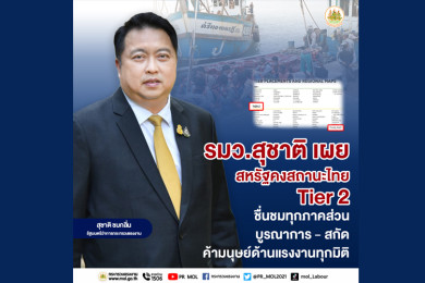 รมว.สุชาติ เผย สหรัฐคงสถานะไทยเทียร์ 2 ชื่นชมทุกภาคส่วนบูรณาการ มุ่งสกัดค้ามนุษย์ด้านแรงงานทุกมิติ