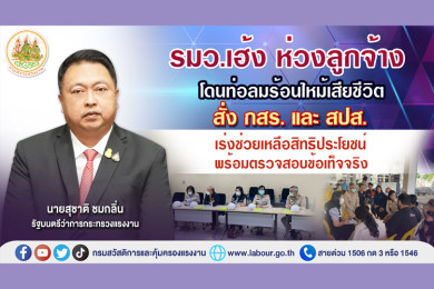 "รมว.สุชาติ" สั่ง กสร.เร่งช่วยเหลือสิทธิตามกฎหมาย ลูกจ้างนิติบุคคลอาคารชุดถูกค้างจ่ายค่าจ้างกว่า 500 คน