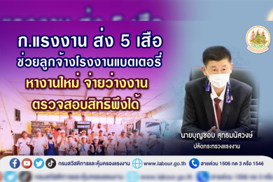 ก.แรงงาน ส่ง 5 เสือ ช่วยลูกจ้างโรงงานแบตเตอรี่ หางานใหม่ จ่ายว่างงาน ตรวจสอบสิทธิพึงได้