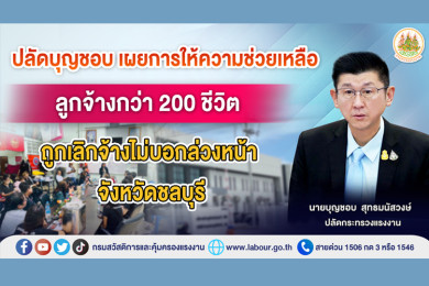 ปลัดบุญชอบ เผยการให้ความช่วยเหลือลูกจ้างกว่า 200 ชีวิต ถูกเลิกจ้างไม่บอกล่วงหน้า จ.ชลบุรี