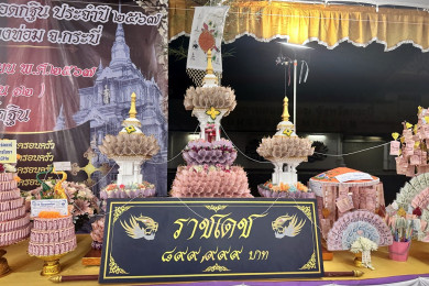 บุญกฐินวัดคลองท่อม สร้างพระธาตุมหาเจดีย์ ชาวบ้านร่วมบุญถวายผ้าฯ-ปัจจัย ยอดบริจาค 6.7 ล้าน