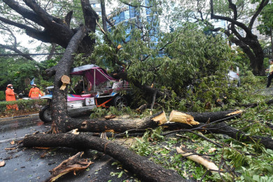 ฝนถล่มเมืองกรุง ระทึก!! กิ่งไม้หักทับรถเก๋ง-สามล้อ