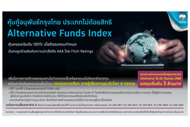 “กรุงไทย” เปิดขายหุ้นกู้อนุพันธ์ Alternative Funds Index คุ้มครองเงินต้น 100% ดีเดย์ 18-20 ก.ย.นี้