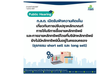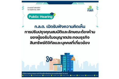 "ก.ล.ต." เปิดเฮียริ่งปรับปรุงคุณสมบัติ-ลักษณะต้องห้ามผู้ขอไลเซ่นส์ธุรกิจสินทรัพย์ดิจิทัลและบุคคลเกี่ยวข้องถึง 27 พ.ย.67