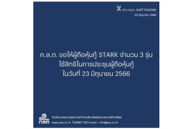ก.ล.ต.ขอให้ผู้ถือหุ้นกู้ STARK ทั้ง 3 รุ่นใช้สิทธิประชุม 23 มิ.ย.นี้ ซักถามข้อมูลก่อนลงมติ
