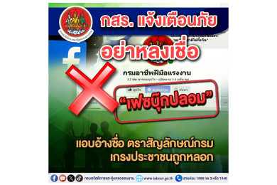 กสร.แจ้งเตือนภัยอย่าหลงเชื่อ “เฟซบุ๊กปลอม” แอบอ้างชื่อตราสัญลักษณ์กรม หวั่นประชาชนถูกหลอก