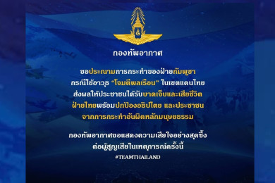 กองทัพอากาศ ประณามกัมพูชาใช้อาวุธโจมตี "พลเรือน" ลั่นพร้อมปกป้องอธิปไตยและประชาชน