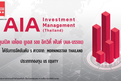 กองทุนเปิด เอไอเอ ยูเอส 500 อิควิตี้ ฟันด์ (AIA-US500) ได้รับจัดอันดับ 5 ดาว จาก Morningstar Thailand ประเภทกองทุน US Equity