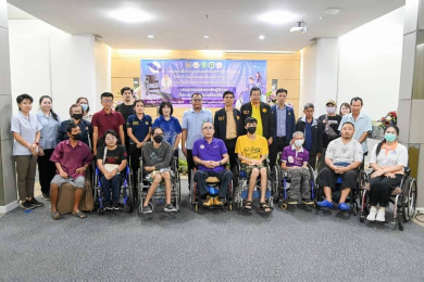 รอง สสจ.กาญจนบุรี เป็น ปธ.ในพิธีมอบอุปกรณ์ช่วยเหลือผู้พิการ อันเนื่องมาจากการประสบภัยที่เกิดขึ้นจากการใช้รถใช้ถนน