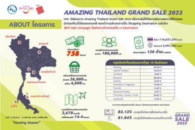 ททท.ปลื้มรายได้โครงการ Amazing Thailand Grand Sale 2023 สร้างเม็ดเงินเข้าประเทศกว่า 758 ล้านบาท