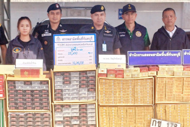 สรรพสามิตจันทบุรี บูรณาการ 9 หน่วยงาน ลุยกวาดล้างทลายเครือข่ายลักลอบขนบุหรี่หนีภาษี ยึดของกลาง 25 ลัง ค่ากว่า 5 ล้าน
