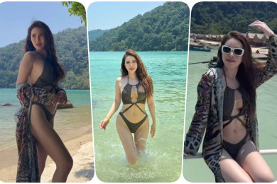 เซ็กซี่ปรอทแตก! "พลอยชมพู" นุ่งชุดว่ายน้ำเว้าสูง อวดก้นเด้งขาวโบ๊ะ