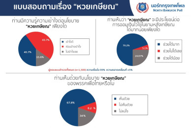 โพลเผยคนไทยชอบนโยบาย "หวยเกษียณ" พรรคเพื่อไทย เห็นด้วยมีประโยชน์ ออมเงินใช้หลังเกษียณ