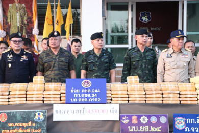 แม่ทัพภาค 2 บินด่วนแถลงข่าวจับบ้า 4.53 ล้านเม็ด ผู้ต้องหา 4 ราย