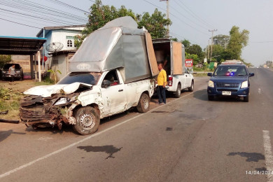 หนุ่มขับรถกระบะตู้ทึบส่งสินค้าหลับในชนจยย.พ่วงข้าง ตา 65 ปี ดับ