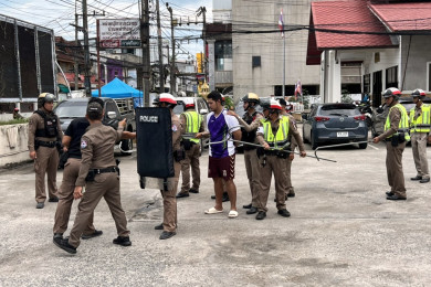 ตำรวจเกาะสมุย ซ้อมแผนเผชิญเหตุควบคุมตัวคนวิกลจริตพกอาวุธมีดในที่สาธารณะ