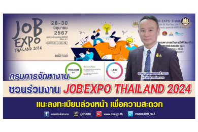 มีงาน 7 แสนตำแหน่งรอ "กรมการจัดหางาน" ชวนลงทะเบียนล่วงหน้า “JOB EXPO THAILAND 2024 มหกรรมหางานสร้างรายได้ที่สนุกที่สุด”