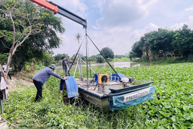 คบ.ยางมณี เร่งกำจัดผักตบชวาด้วยแรงคน เพิ่มประสิทธิภาพการไหลของน้ำ จ.อ่างทอง