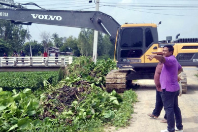 คบ.สามชุก จับมือ สชป.12 ลุยแก้ปัญหาผักตบชวา คลองระบายใหญ่สามชุก