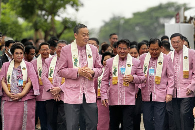 "นายกฯ" สวมเสื้อลายประจำจังหวัด ประชุม ครม. สัญจร เมืองเพชรบุรี "พัชรวาท" มอบต้นหัวใจเศรษฐี ให้ "เศรษฐา"