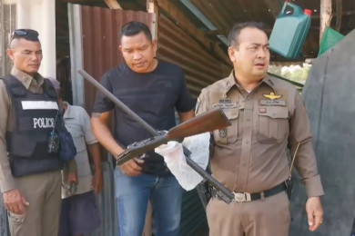 หลานหัวร้อน หาถังน้ำดื่มไม่เจอ คิดว่าน้าชายกับน้าสะใภ้ขโมย แบกปืนยาวขู่ยิง ก่อนหลบหนี ตร.ค้นเจอปืน 3 กระบอก
