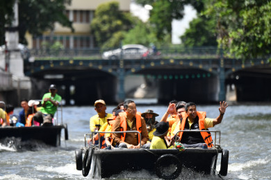 “นายกฯ” ควง “ผู้ว่าฯกทม.” นั่งเรือตรวจโครงการเฉลิมพระเกียรติ คลองโอ่งอ่าง ชาวบ้านทวงเงินดิจิทัล