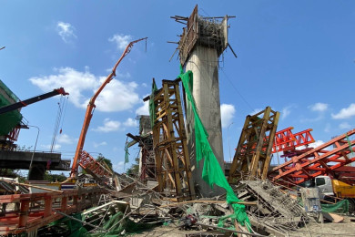 "สุริยะ" สั่งเยียวยาผู้เสียชีวิตรายละ 1 ล้าน หยุดก่อสร้าง 14 วัน เร่งหาสาเหตุคานถล่ม
