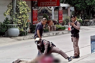 วุ่นทั้งชายหาด หนุ่มเร่ร่อนคลุ้มคลั่งไล่ทำร้ายหญิงชราถูกตีหัวเลือดอาบ เจ้าหน้าที่ต้องระดมกำลังไล่จับ