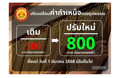 ต้นทุนพุ่ง! ดีเดย์ 1 มี.ค.68 ขึ้นค่ากำเหน็จทองรูปพรรณ เป็นบาททองคำละ 800 จากเดิม 500 บาท