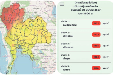“เหนือ”วิกฤติ! ค่าฝุ่นแดงเถือก “แม่ฮ่องสอน” หนักสุด พุ่งทะลุกว่า 200 ไมโครกรัม